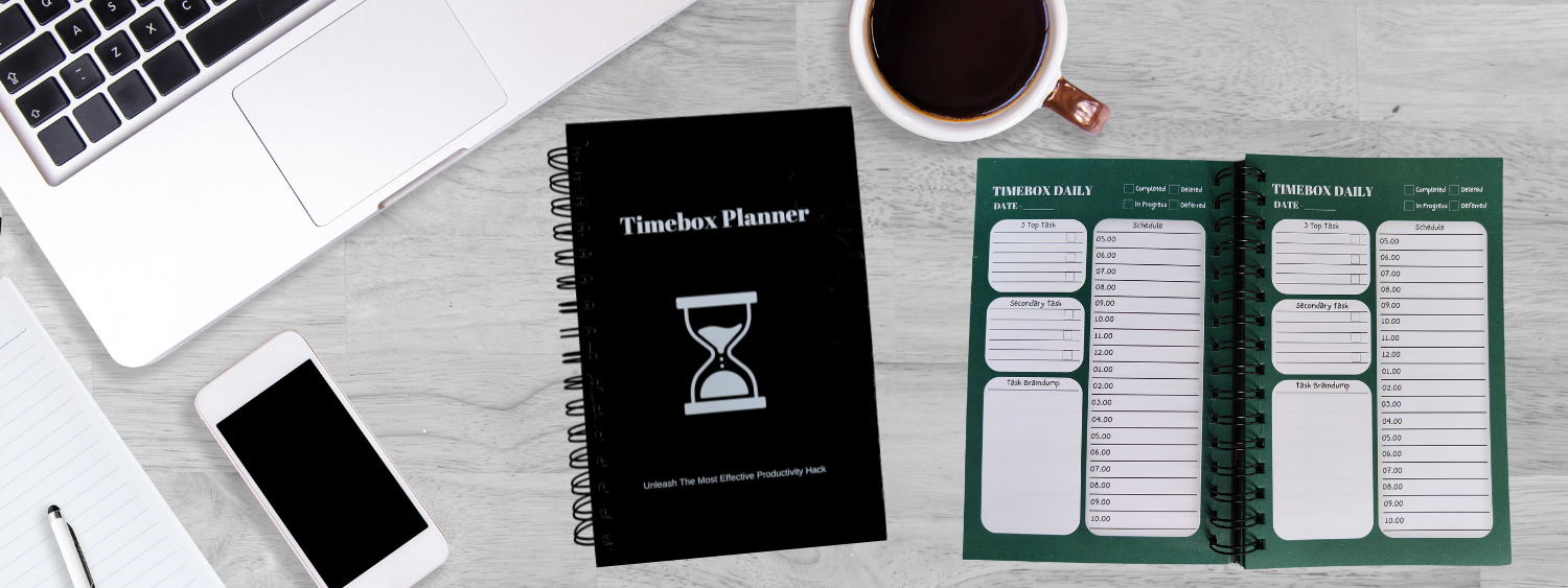 Timebox Planner Midnight Black, Productivity, Daily Planner for 6 Months, Timeboxing, A5 Size, Wiro, Hardcover, 100 GSM Paper